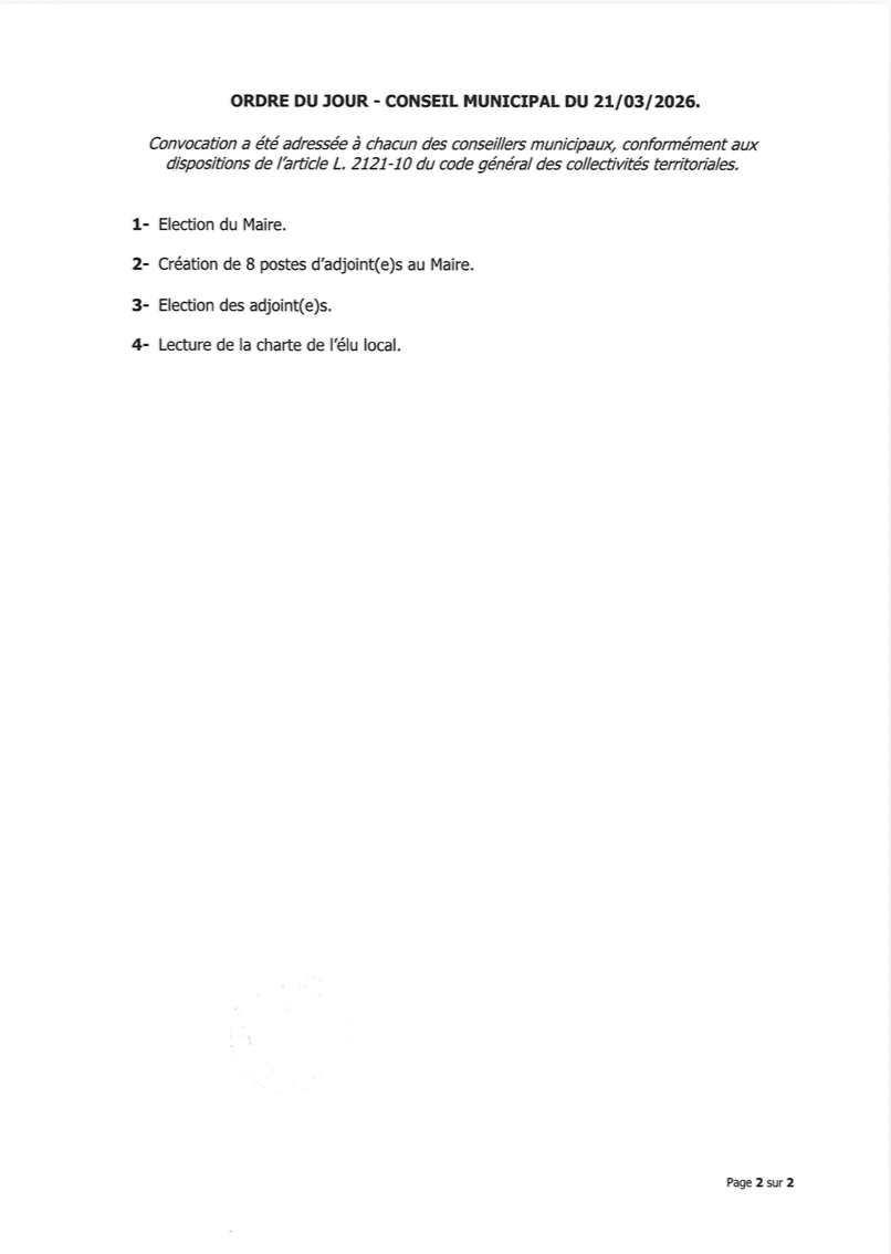 Le conseil municipal d'intallation se tiendra à l'Hôtel de Ville le samedi 21 mars à 11h