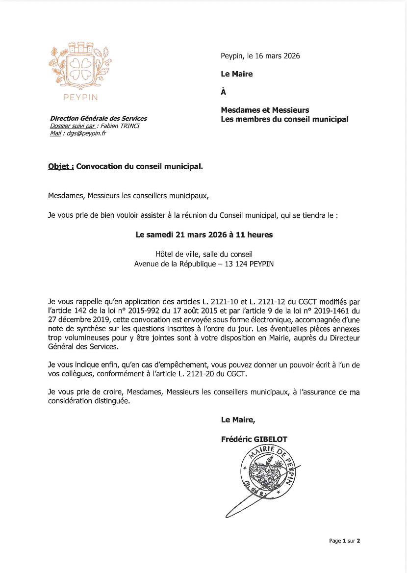 Peypin, Mardi 17 Mars 2026, 13 °C, EnsoleilléCONSEIL MUNICIPAL DU 21 MARS